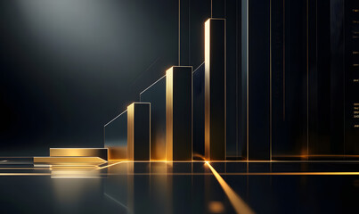 Futuristic financial dashboards and luxury business charts with glowing neon lines, gold accents, and connected nodes for corporate branding.