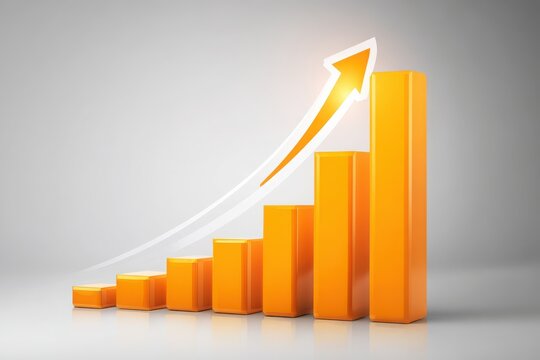 Orange bar graph illustrating growth trends with an upward arrow against a gray background