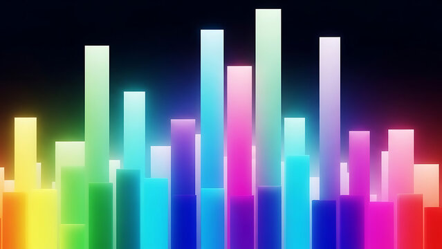 A dynamic candlestick chart displays colorful bars in vibrant gradients on a black background, showcasing financial trends visually