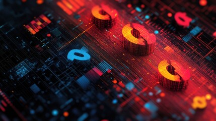 Futuristic Digital Finance Interface with Glowing Dollar Symbol in High-Tech Design : Generative AI