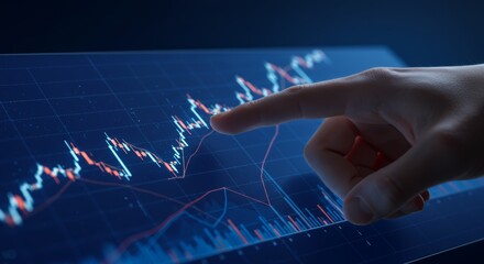 Dynamic financial data chart with candlestick patterns in blue digital interface