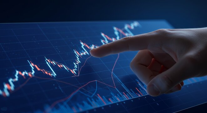 Dynamic financial graph with trend lines and stock market data on digital screen