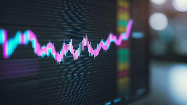 Market Trend:  A vibrant graph on a computer screen depicts a fluctuating market trend, capturing the dynamic nature of the financial world.