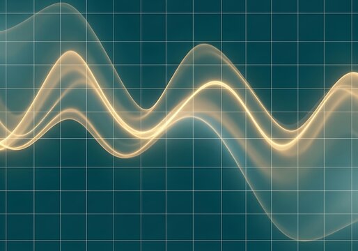 Abstract data visualization featuring a glowing sine wave over a grid chart for financial analysis.
