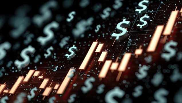 Abstract digital stock market chart glowing on a dark background, featuring dynamic lines, grids, and data visualization for finance and tech visuals.