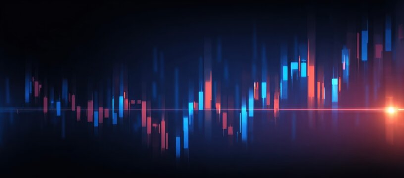 Abstract digital financial chart with glowing blue bars and lines.
