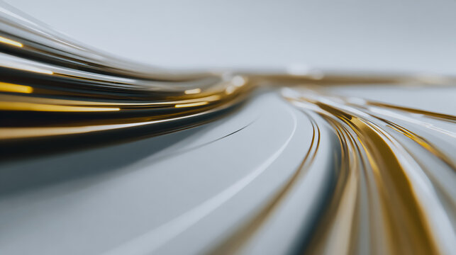 Abstract background of fast flowing golden and white curved lines, symbolizing data speed, modern technology, and futuristic movement