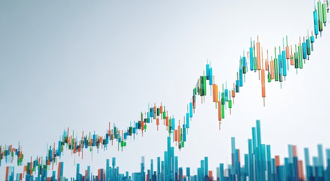 A digital financial chart showing fluctuating data and stock market trends, with glowing bokeh effects in the background, creating a dynamic, futuristic atmosphere.