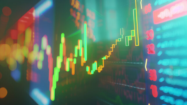 A digital stock market graph displaying fluctuating financial data in vibrant colors.
