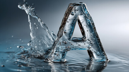 3d water letter e with dramatic splash effect