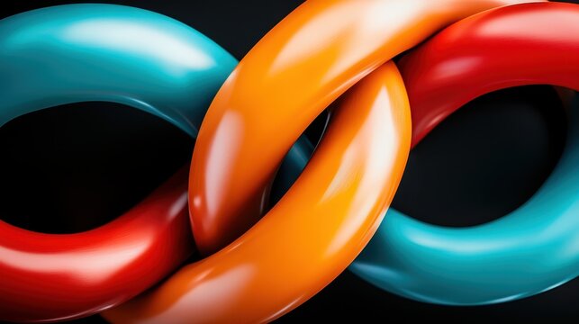 An artistic close-up of intertwined glossy rings in vibrant colors representing unity, connection, and the dynamic interplay of abstract forms in modern design.
