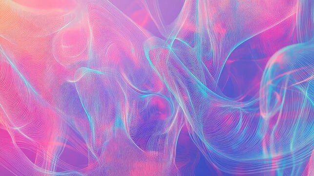 Abstract network of iridescent neon lines and vibrant colors creating a fluid, futuristic background with glowing light particles and dynamic energy for digital concept design
