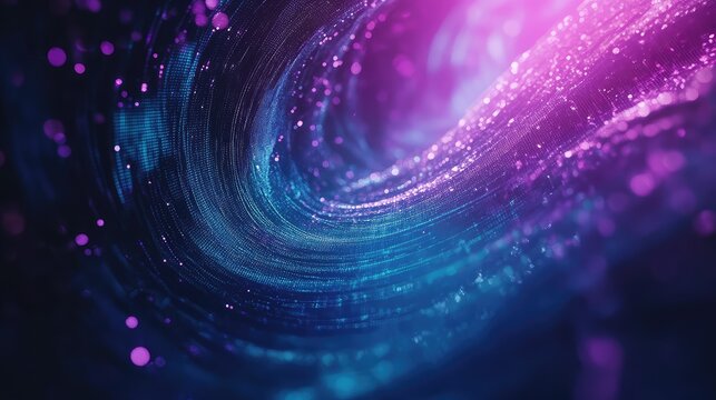 Glowing blue and magenta particles create a dynamic, abstract grid, representing complex digital information moving at high speeds across a futuristic technology background