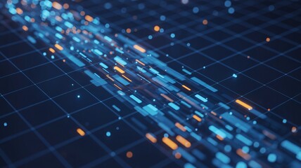 Abstract blue digital light tunnel with glowing lines and particles, representing data flow and technology