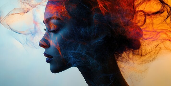 Silhouette of Woman Merging with Globe and Light Connections Global Network Technology Communication
