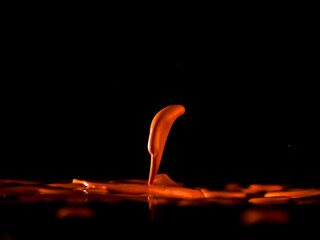 Colorful paint jumping in different forms in front of black background.