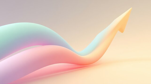 Flowing abstract shapes with pastel colors and upward arrow symbolizing growth, success, and progress in a soft gradient background