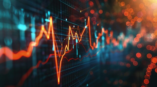 Fluctuating stock market trends on digital financial graph