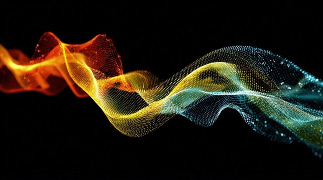 Colorful atomic structure with dynamic wave on black background