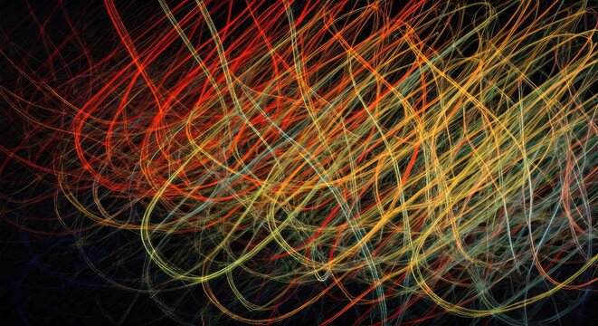 Abstract, vibrant lines swirling in dark background