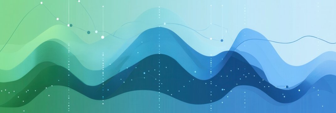 Abstract depiction of financial market trends, showcasing candlestick charts and layered wavy lines