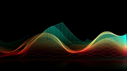 abstract wave background, abstract background with waves, Green , red line chart waves front view, Ai generated image
