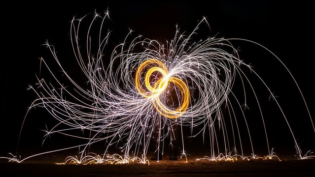 Dynamic Light Trails Forming Abstract Shapes On Black Images