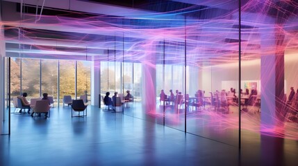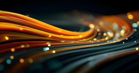 Abstract ribbons flow, illuminated. Dramatic lightin creates dynamic waves, glwing particles, dark backgound. Visual energy, futurstic design.