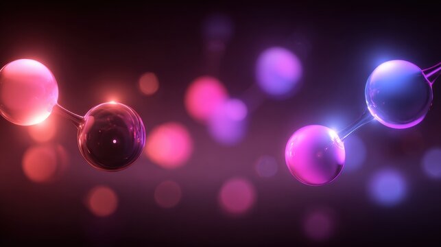 Vibrant molecular structures on abstract purple background