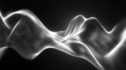 Particle surface creating a dynamic oscillating wave pattern, visualizing big data, artificial intelligence, neural networks, or scientific research concepts
