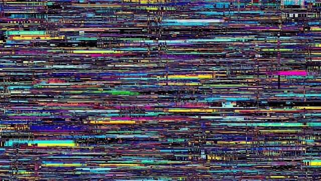 Abstract messy glitch vibrant background with colorful distorted digital noise and pixelated texture featuring bright neon colors and copy space for modern design, futuristic technology, and creative