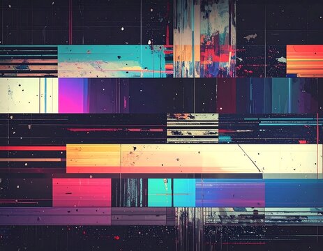 Glitch pattern shimmering in digital void, with multicolored glitch artifacts and pixel lines