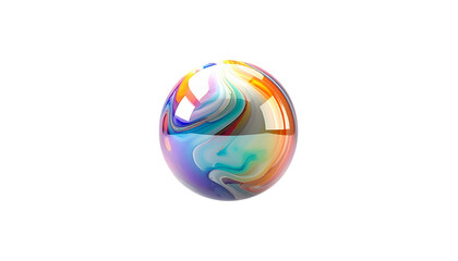 3d illustration of abstract colorful swirling fluid with glossy spheres and bubbles, creating a vibrant and dynamic visual effect with light and reflection, isolated on transparent background