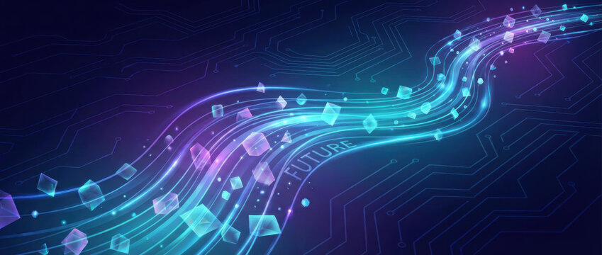 Background technology abstract design digital modern concept glowing neon data wave curve over circuit board line future flow Abstract technology background concept