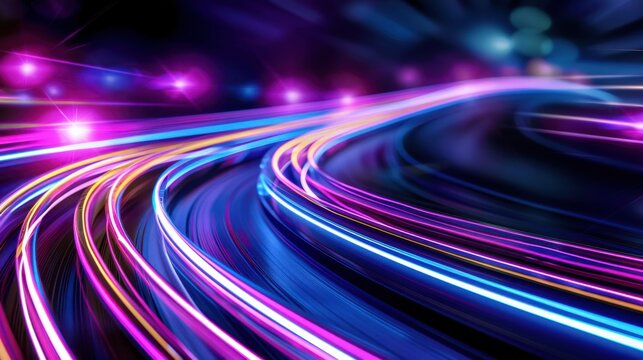 Dynamic neon light trails over dark background
