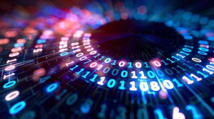 Digital background in shades of cyan and black, featuring binary numbers arranged randomly for a tech-inspired aesthetic