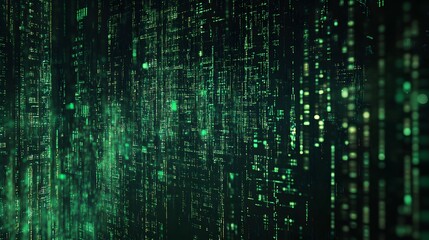 Glowing data cluster streaming code and numeric overlays in neon virtual grid