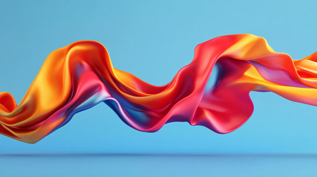 Abstract 3D Render of Dynamic Orange and Blue Fabric Waves on a Soft Blue Background