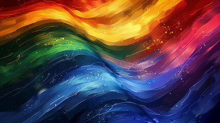 Pride flag, vibrant colors and swirling lines, painting or painted rainbow background, dynamic and artistic