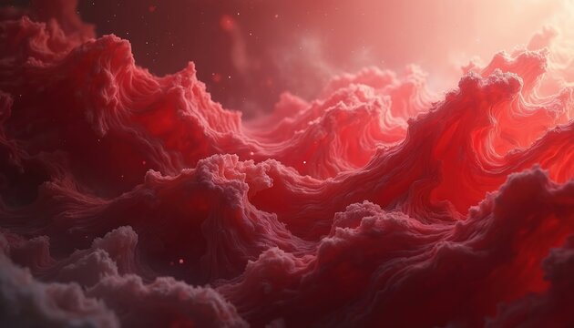 Abstract 2D art animation pieces of hues of red 2D animation red tone grunge texture abstract background. Red abstract wave, rippled water & cloud texture background. Fantasy & dreamy forms.