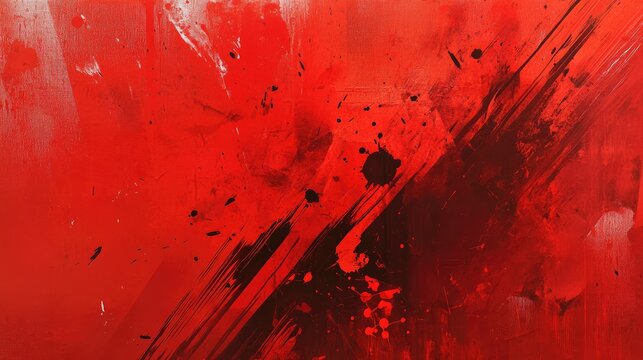 Abstract red splatters and brush strokes with varying intensities and transparencies on a dark red base