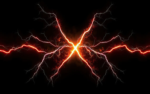 x shaped vivid red lightning bolts radiating from central point on black background electrifying energy concept dynamic natural phenomenon