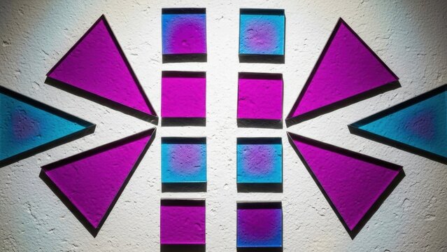 Abstract geometric pattern with vibrant purple and blue shapes creating a symmetrical design.