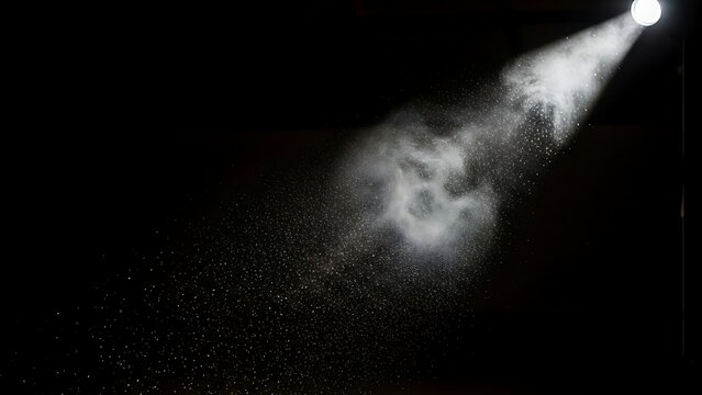 Illuminated particles cascade downward, creating dynamic contrast against a dark background