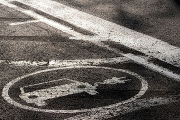 A dark scene featuring illuminated spots reflecting on wet ground, surrounded by mist, creating a dramatic and atmospheric effect.