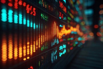 A vibrant display of stock market numbers in bright colors, illustrating real-time financial data and trading activity.