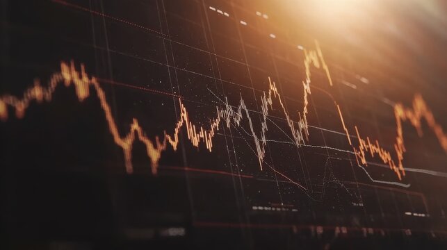 Market Trends: Close-up of a vibrant stock market chart displaying dynamic candlestick patterns.  A visual representation of financial data and market fluctuations.