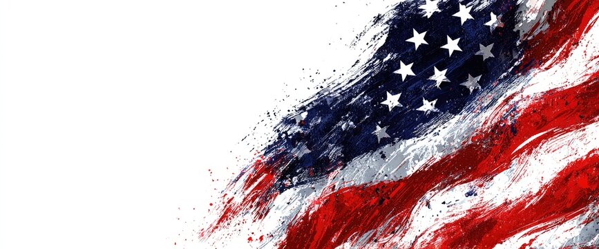 An abstract painting of a national flag, rendered in vibrant red, white, and blue hues, with a dynamic, brushstroke style that suggests movement and energy.
