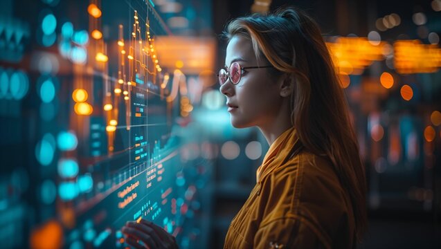 Scientist analyzing data using advanced technology in laboratory