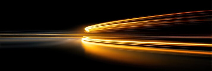 Dynamic glowing light trails over dark background